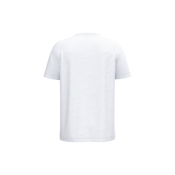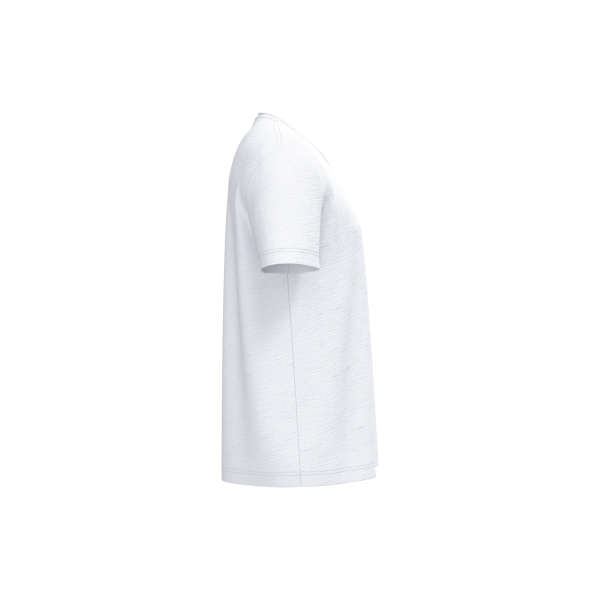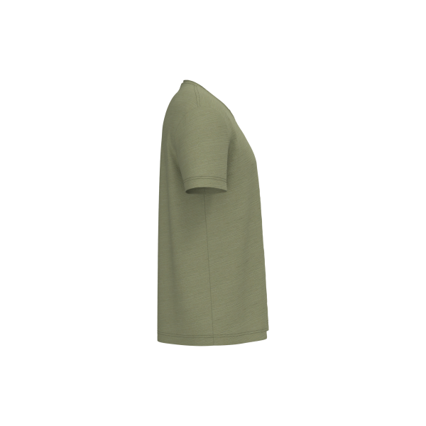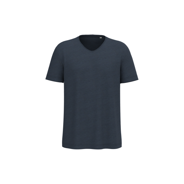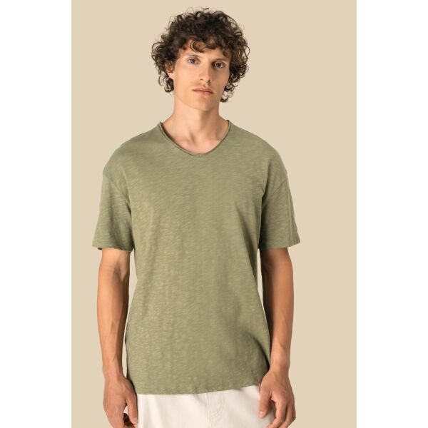 100% biologisch katoen. Gekamd katoen. Jerseytricot met gevlamd effect. Regular fit met afhangende schouders. Enzymgewassen. Zijnaden. V-hals met onafgewerkte boorden in de hoofdstof. Schouderversteviging. De hals is aan de binnenkant afgewerkt met ton-sur-ton nektape in de hoofdstof. Mouwuiteinden en onderkant met dubbel stiksel.