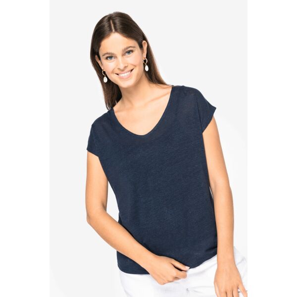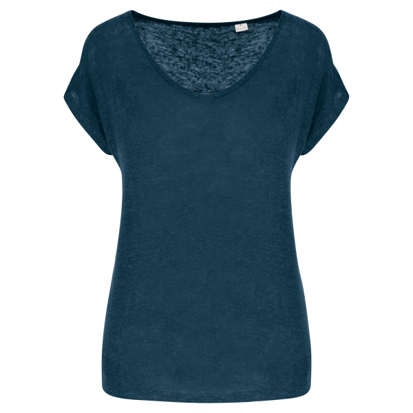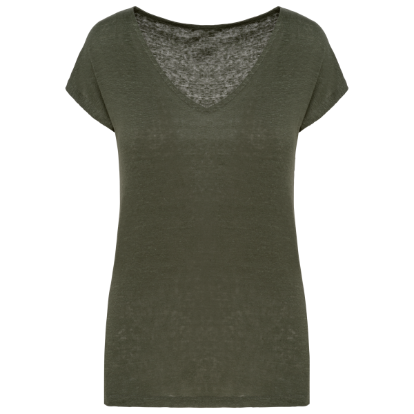 - Linnen dames-t-shirt V-hals