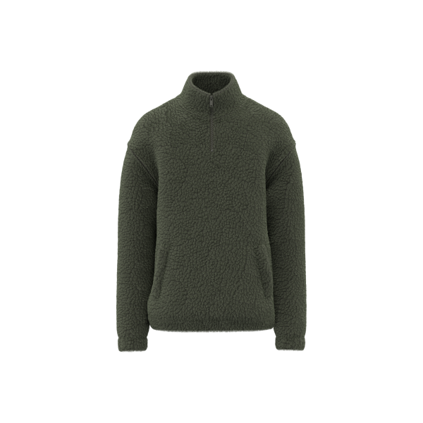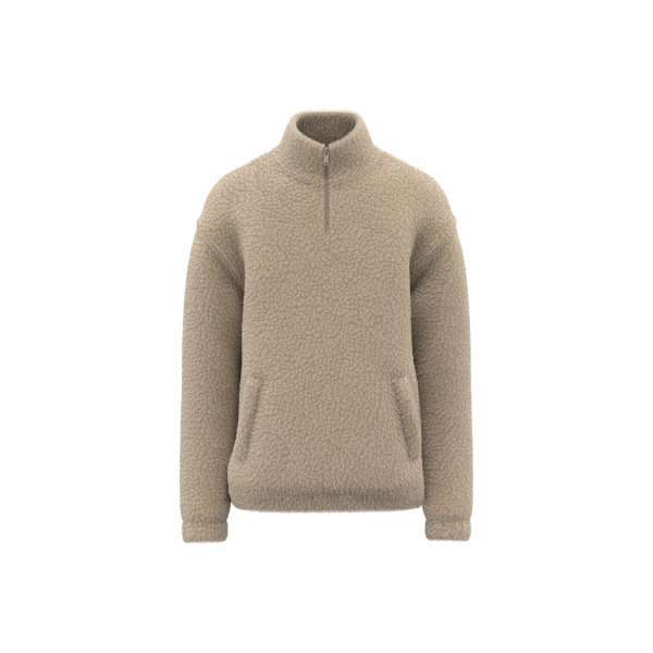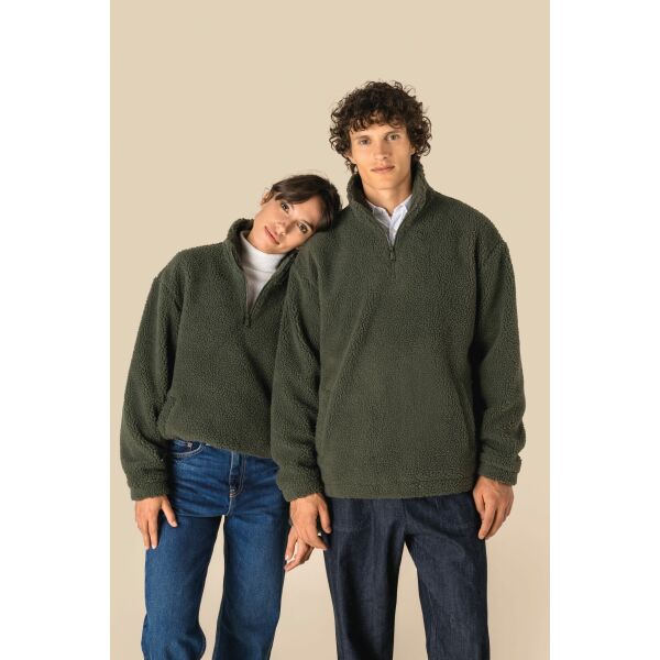 Uniseks sweater van sherpa met kwartrits en afhangende schouders