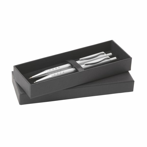 Geschenkverpakking voor balpennen, touchscreen-pennen en vulpotloden. Van stevig karton, met fluwelen inlage. Geschikt voor 1 of 2 schrijfinstrumenten…